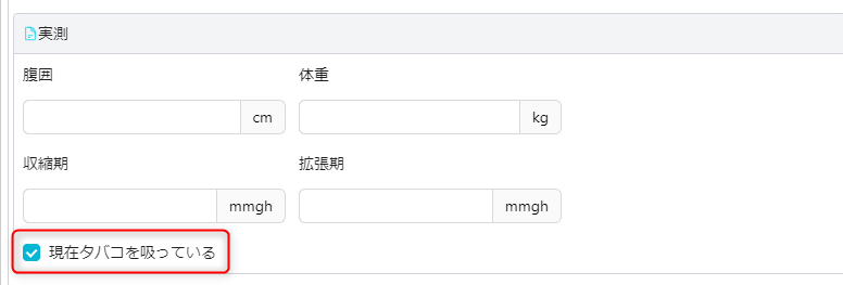喫煙習慣を計画で設定してアウトカム評価の対象にした場合、初回面談の実測欄で「現在タバコを吸っている」にチェックが必要です。