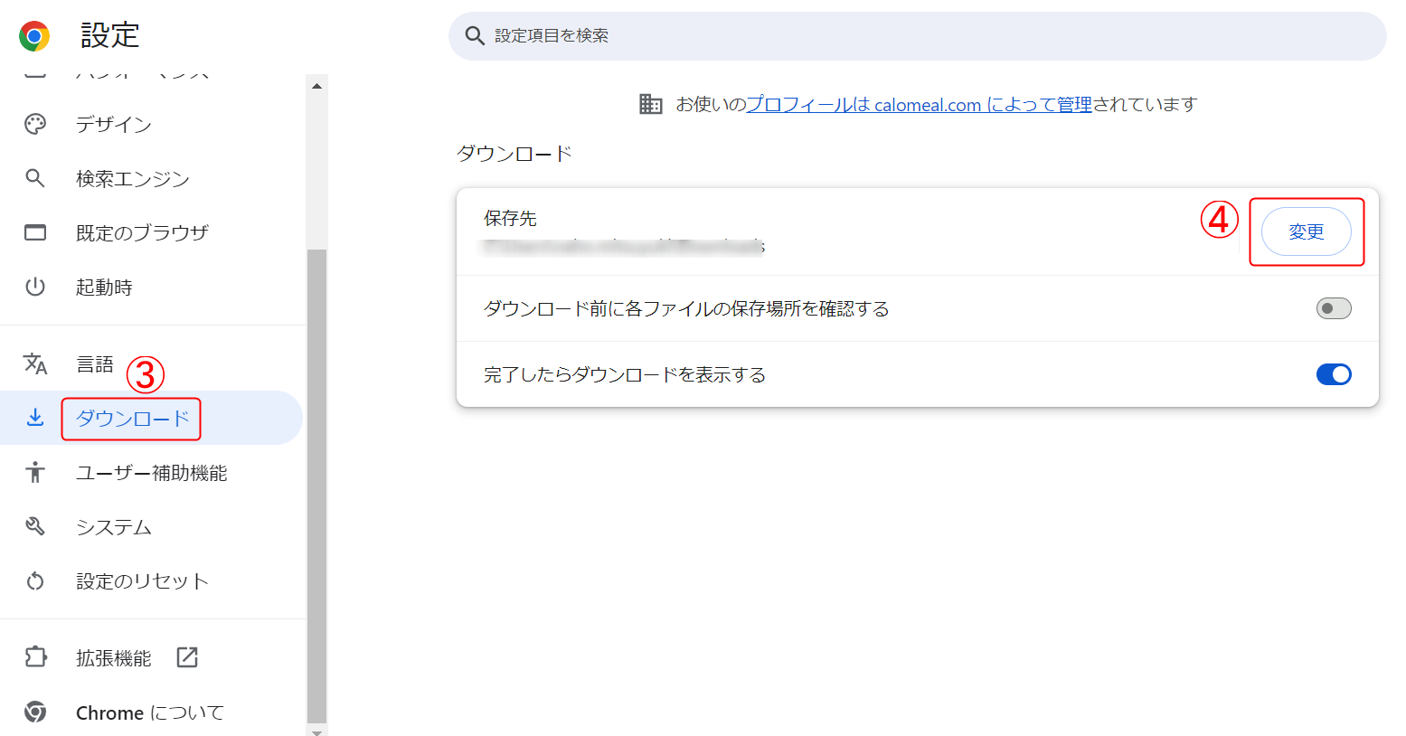 ブラウザで設定されている保存先に保存されますので、ブラウザ上での変更が必要です。